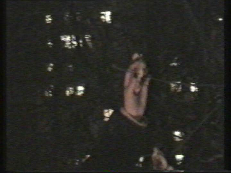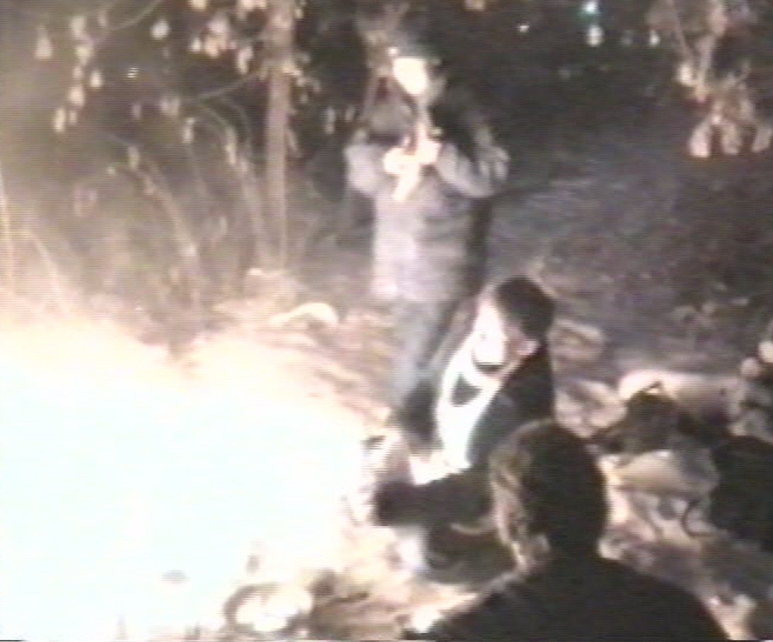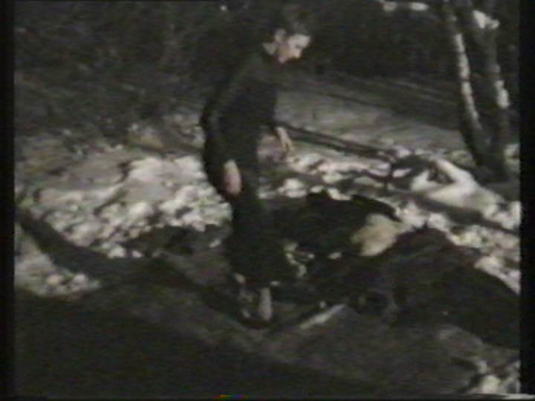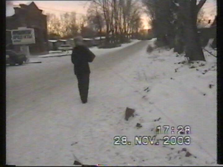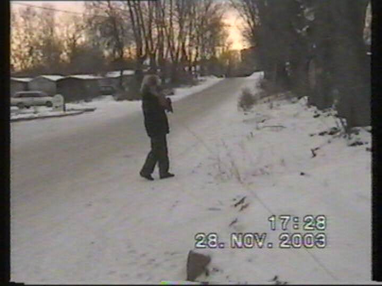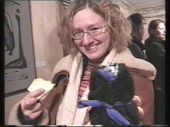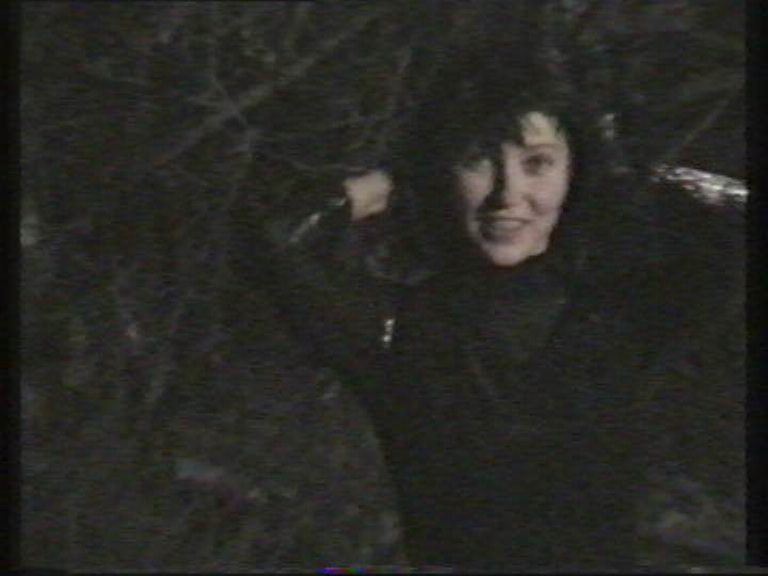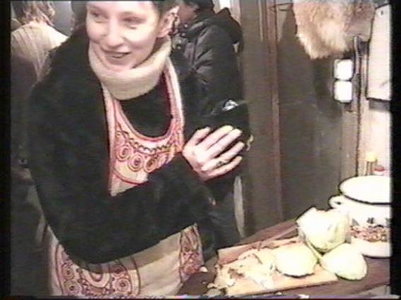 От автора: “В этот день у меня было два дела почти одновременно. Одно – в Доме Елового, другое довольно пафосное – в Доме Актера. Благо, что от ДЕ до ДА всего 13 минут пешком. В надежде успеть на оба мероприятия, я решила сделать этот перформанс в саду. В ноябрьский морозный вечер я была одета как капуста – полушубок, свитер, ватные штаны. Стоя на снегу среди голых яблонь я переоделась в вечернее бархатное платье с люрексом, надела капроновые колготки и туфли на каблуке. Последний штрих – парик – завершил метаморфозу. Я везде успела…”