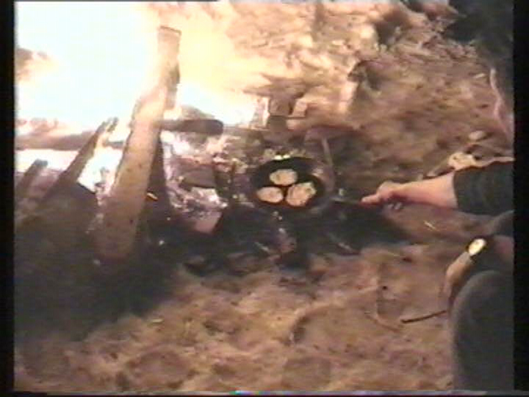 Действие 4. РЯБА. Эпизод третий: болтунья. Материалы и оборудование: “золотые” яйца – 10 штук, сковорода, масло, костер.