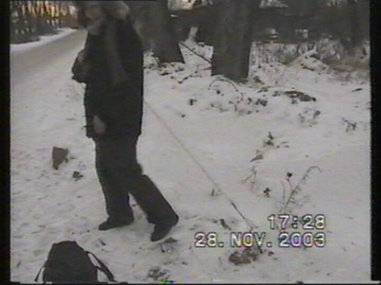 В первой части действия нить от шарфа привязывают к былинке, растущей в снегу. Шарф на шее идущего. При движении вперед нить тянется и шарф распускается. Остается след ушедшего человека – путеводная нить, по которой могут пройти другие. Вторая часть раскрывает идею выбора и узнавания пути.