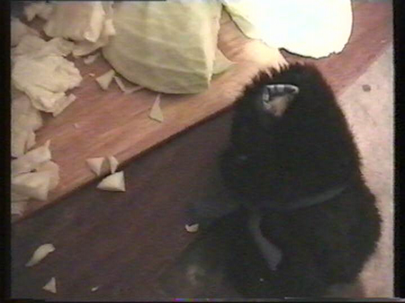 От автора: “Из капусты выстрогала кочерыжку, запеленала в тряпочки, завернула в шубку. Все холили и лелеяли, целовали, баюкали, нянчили… Остальная капуста покрошена в салат к общему удовольствию.”