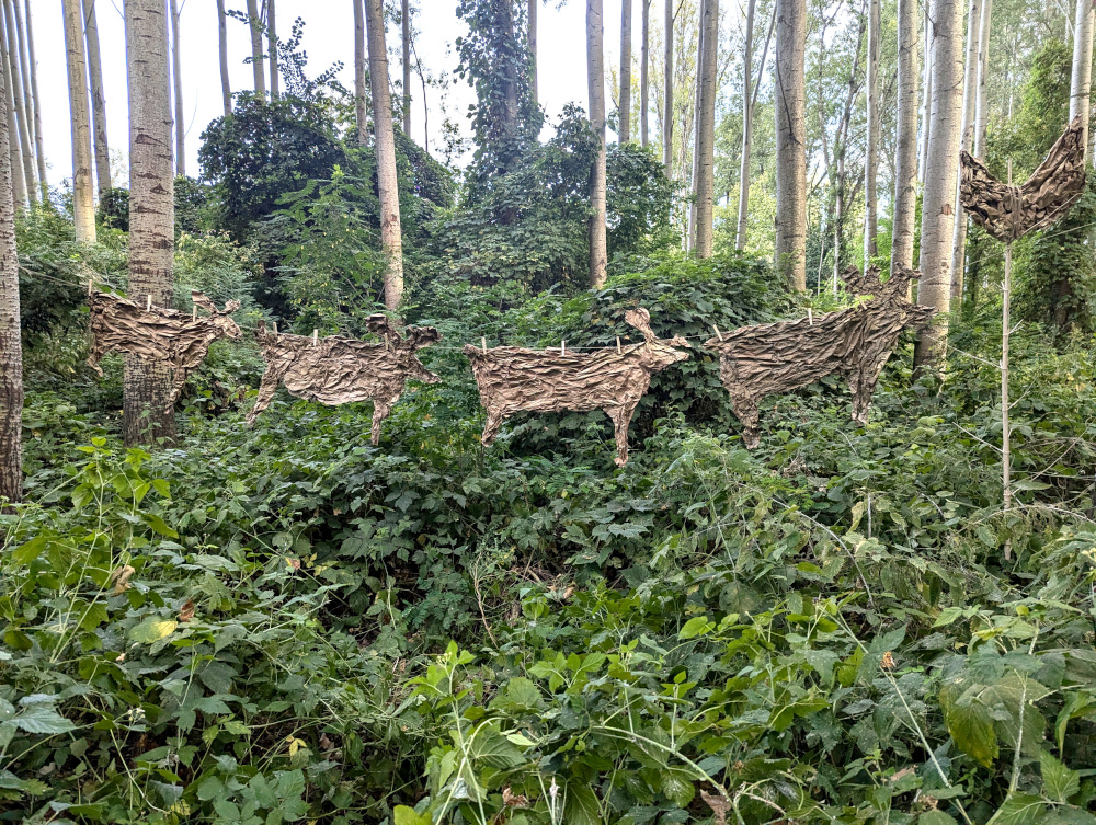 Эфемерность и временность: Олени, сделанные из вымокшей и деформированной бумаги, находятся в состоянии постоянного изменения. Они не статичны — их формы и восприятие зависят от условий окружающей среды, как освещение и влажность. Это отражает идею “между” — олени существуют в промежутке между созданием и разрушением, между видимым и невидимым.