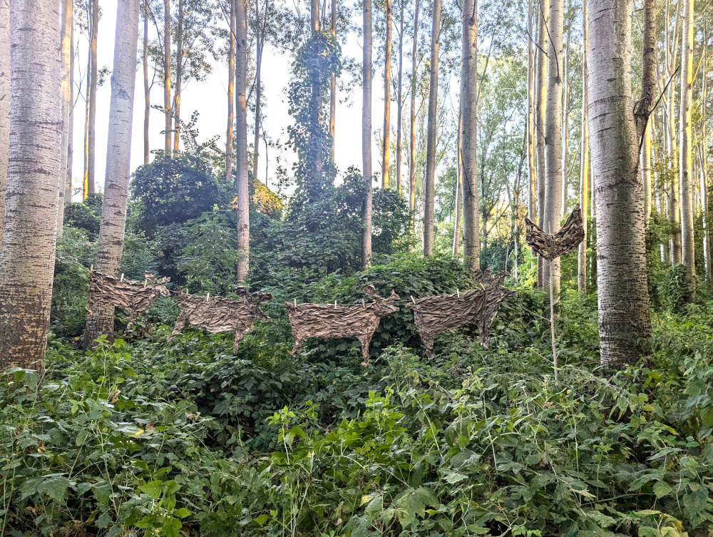 The “Flying Deer” project was conceived from the start as an ephemeral object, doomed to gradual decay. Within a short time, the deer figures began to lose their shape under the influence of wind, moisture, and the natural processes occurring in the forest. After rain, the deer almost completely disappeared, leaving only faint traces of their existence. This can be interpreted as a symbolic acceptance of the object by the spirits of nature. The deer, made from natural materials, seemed to be returned to nature in the process of their decomposition.