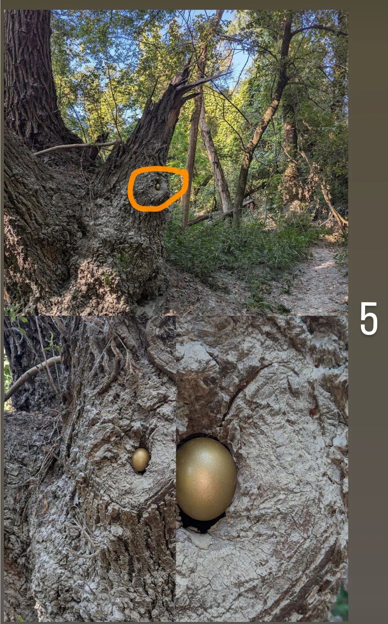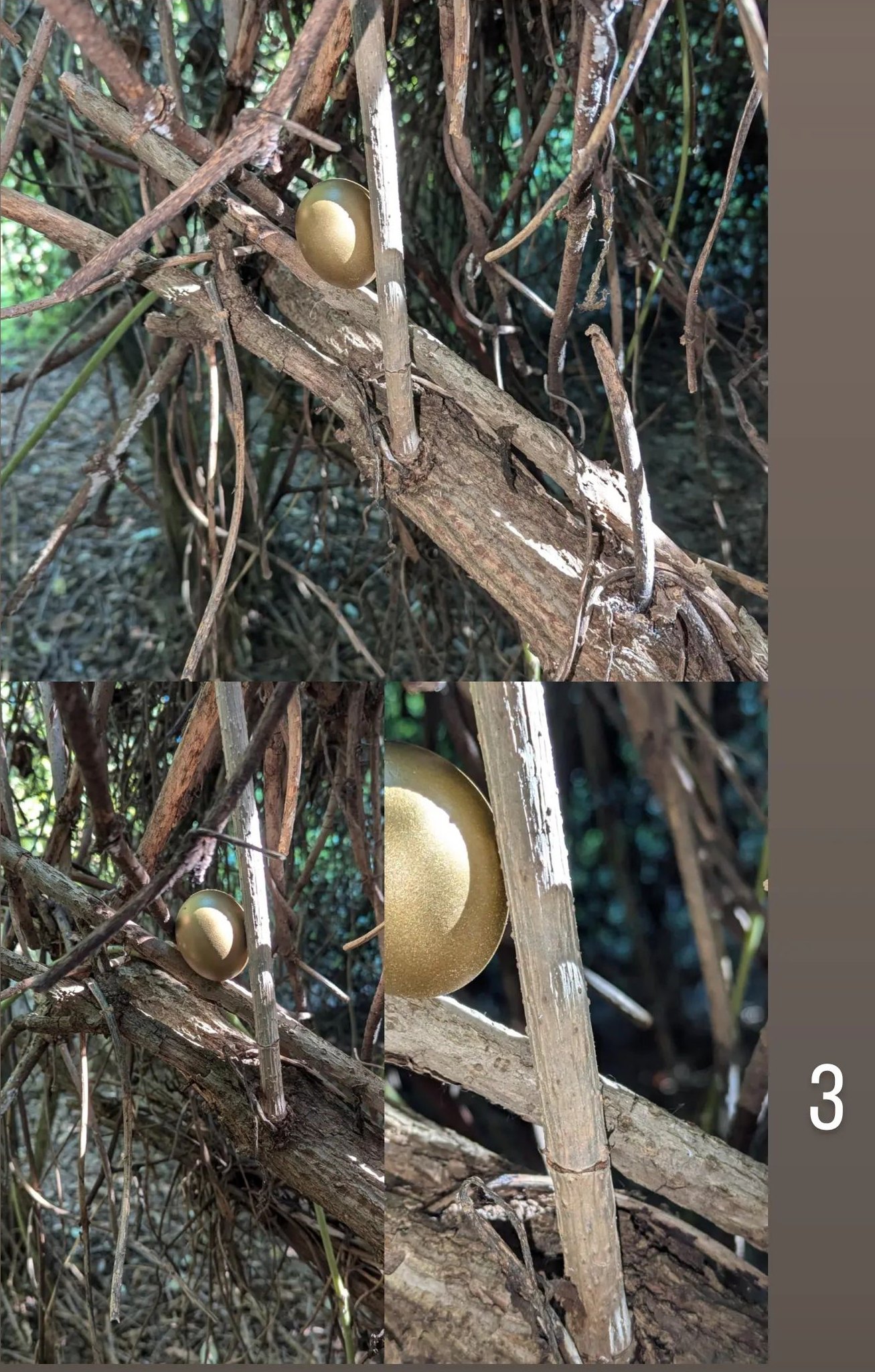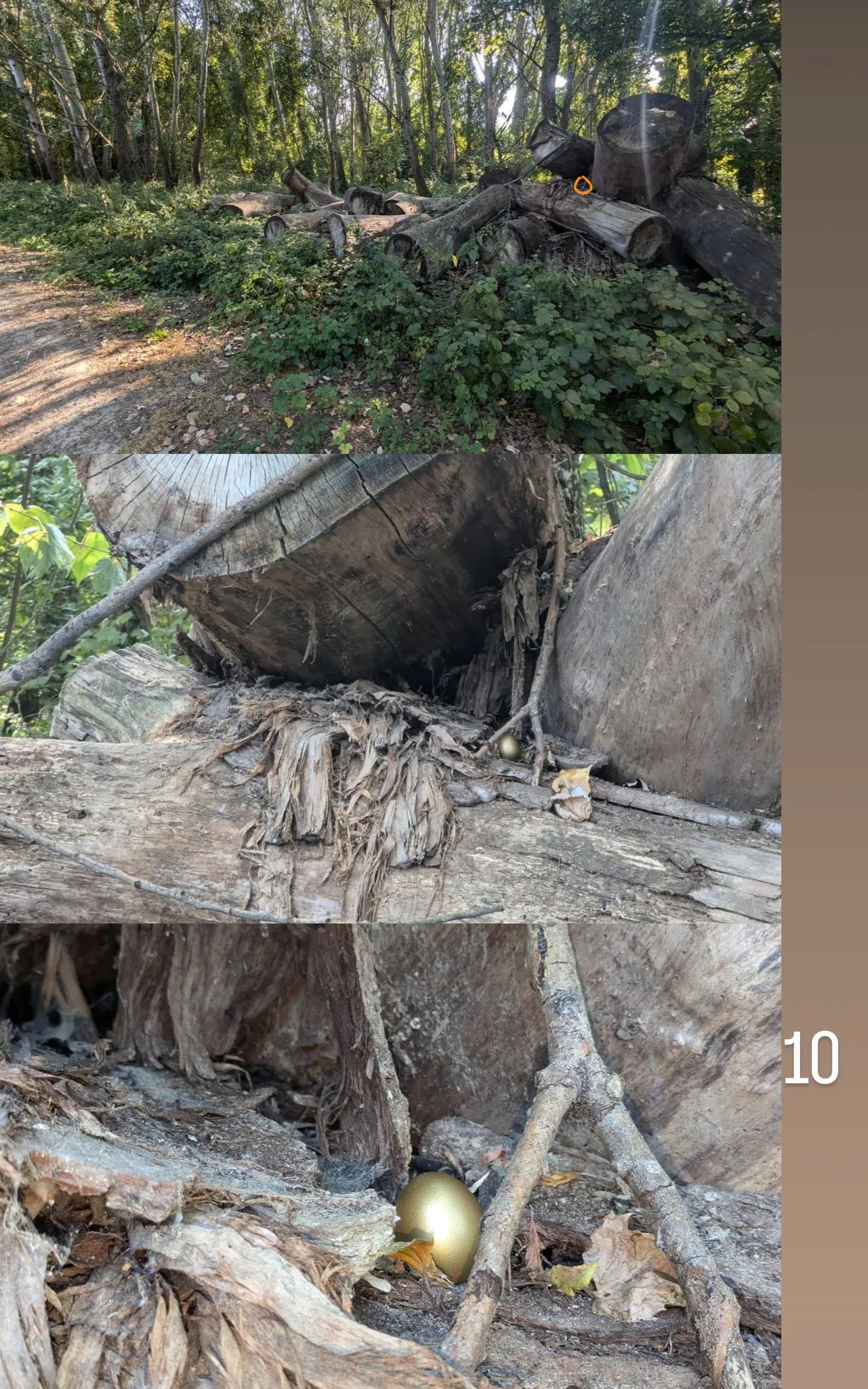 От автора: Чувствовала ли я себя птицей, создавая этот объект? Скорее, нет. Но поиск наилучшего места для размещения яйца действительно захватил меня. Возможно, птицы тоже сканируют местность в поисках идеального места для своего гнезда. Я не отходила далеко от тропы, чтобы зрителям было легче искать, но не все локации легко заметны. Иногда стоит оглядеться. Я даю вам подсказки для поиска в виде карты и фотографий.