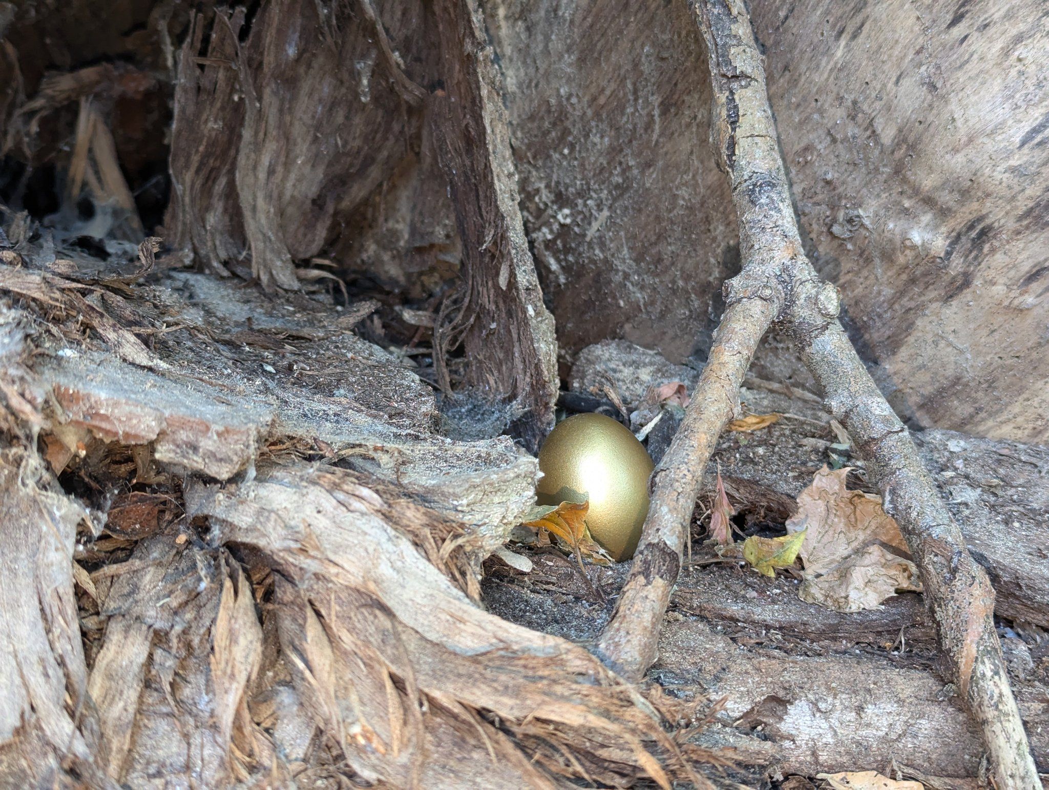 • JELEN|ÉS (Переход и взаимодействие): Проект олицетворяет переходное состояние между скрытым и явным, между ожиданием и обнаружением. Золотые яйца, спрятанные в природных укромных местах, создают связь между прошлым (создание) и будущим (обнаружение), приглашая зрителей участвовать в этом процессе.