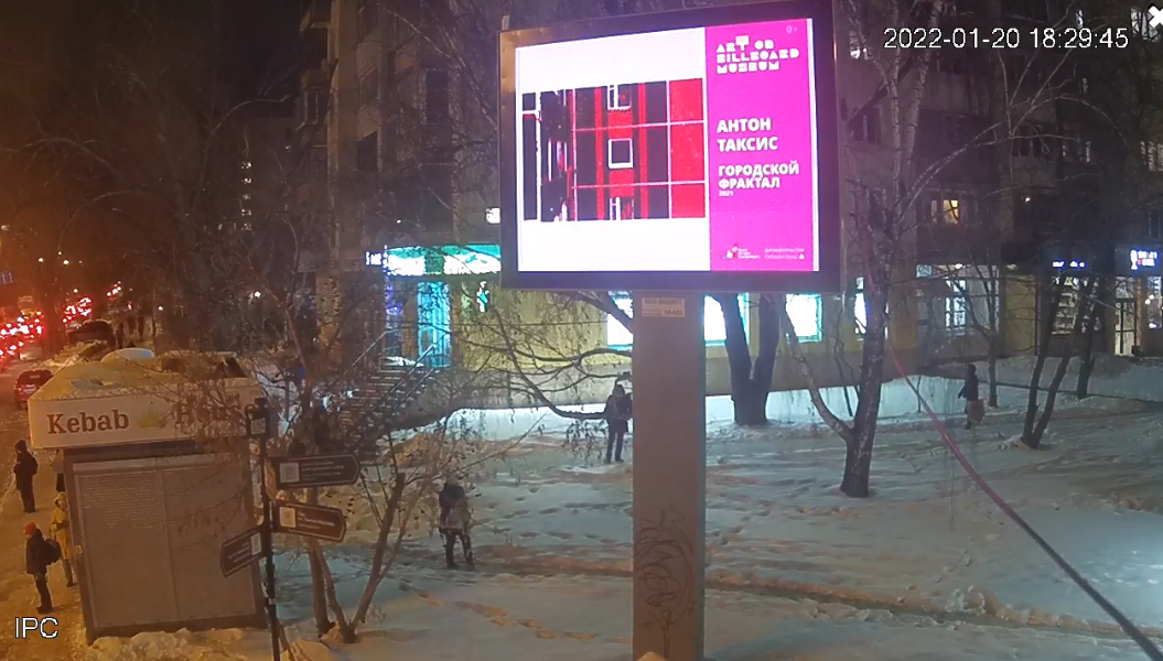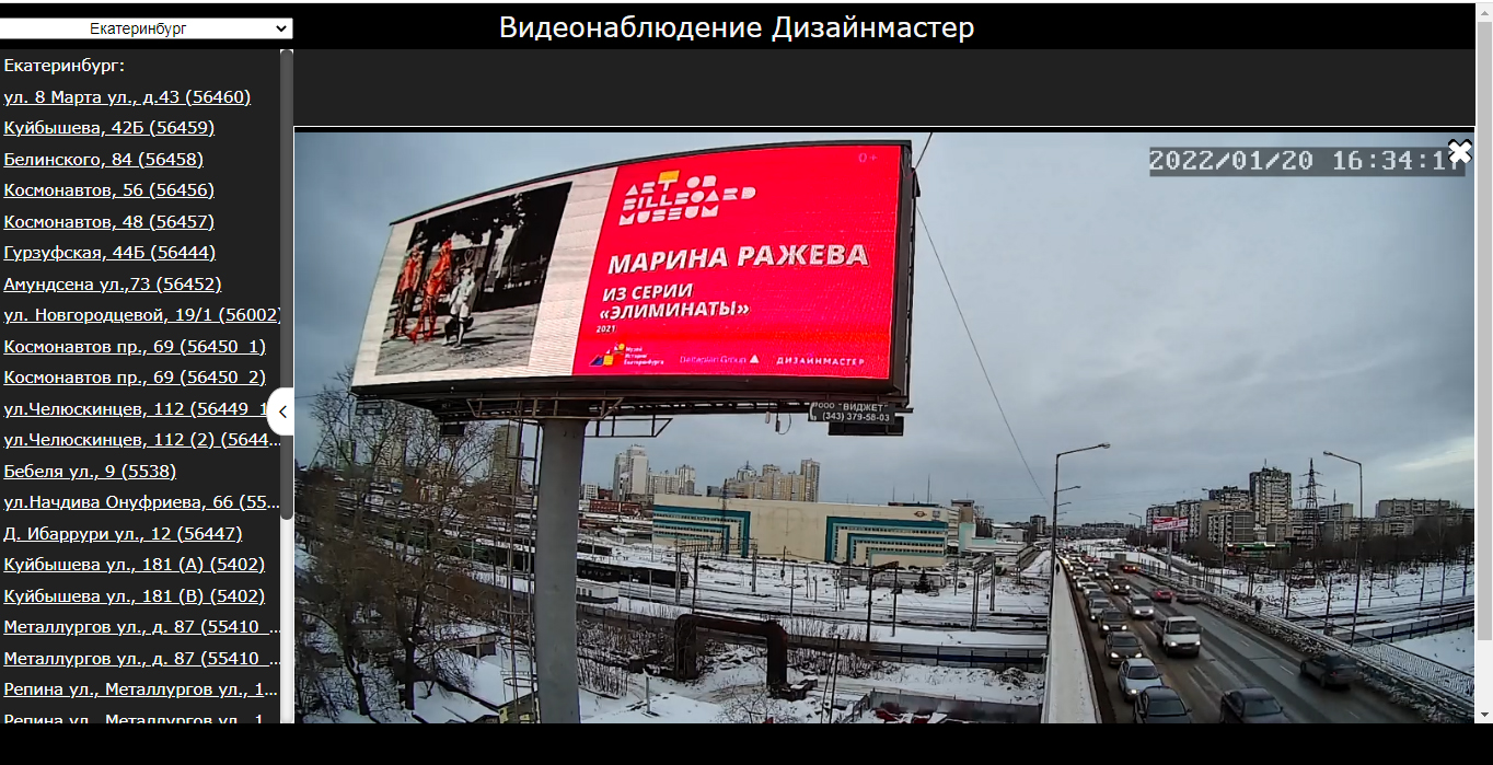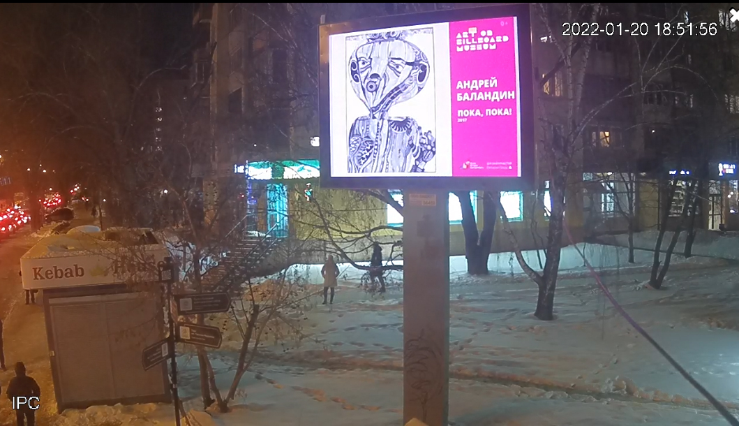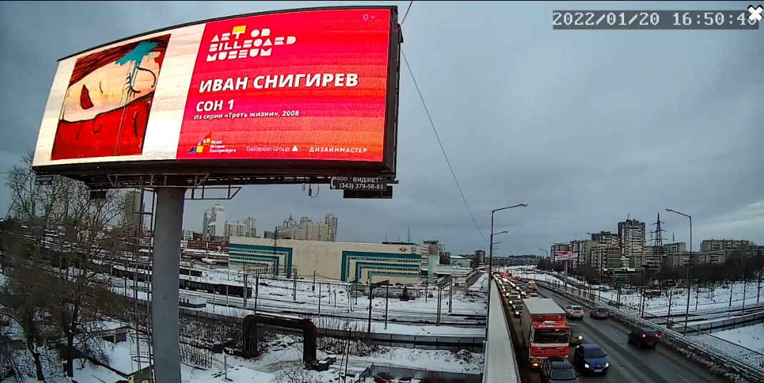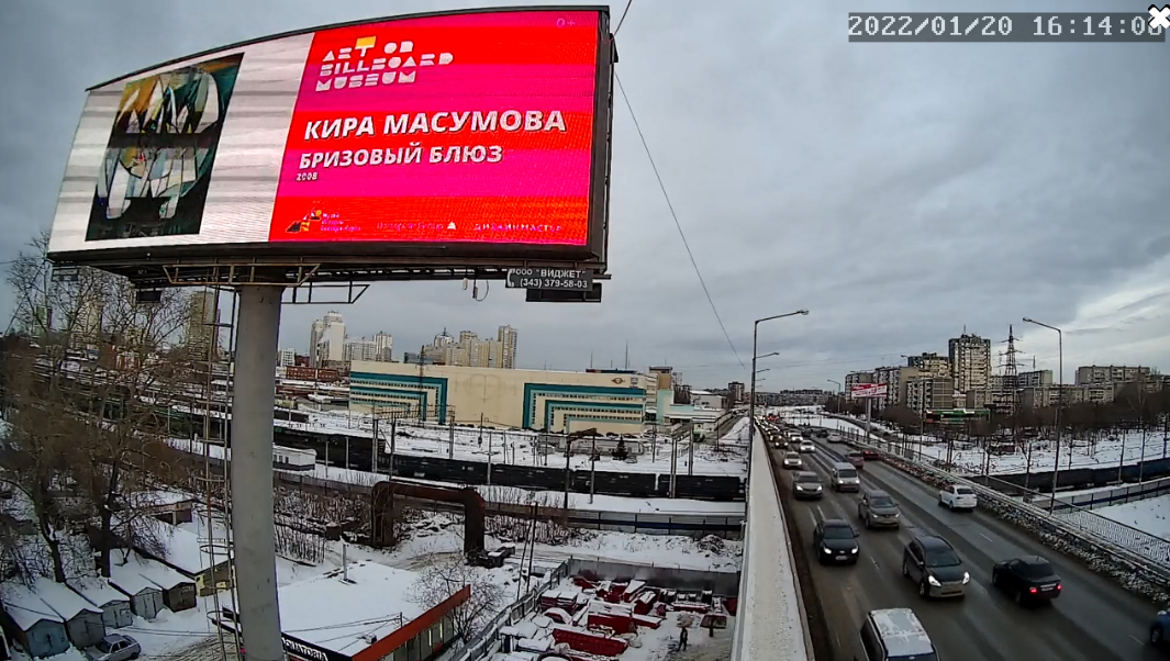 Сотня билбордов показывала работы художников. В режиме реального времени их можно было посмотреть онлайн из любой точки мира или прийти и посмотреть на билборд по указанным адресам в Екатеринбурге: