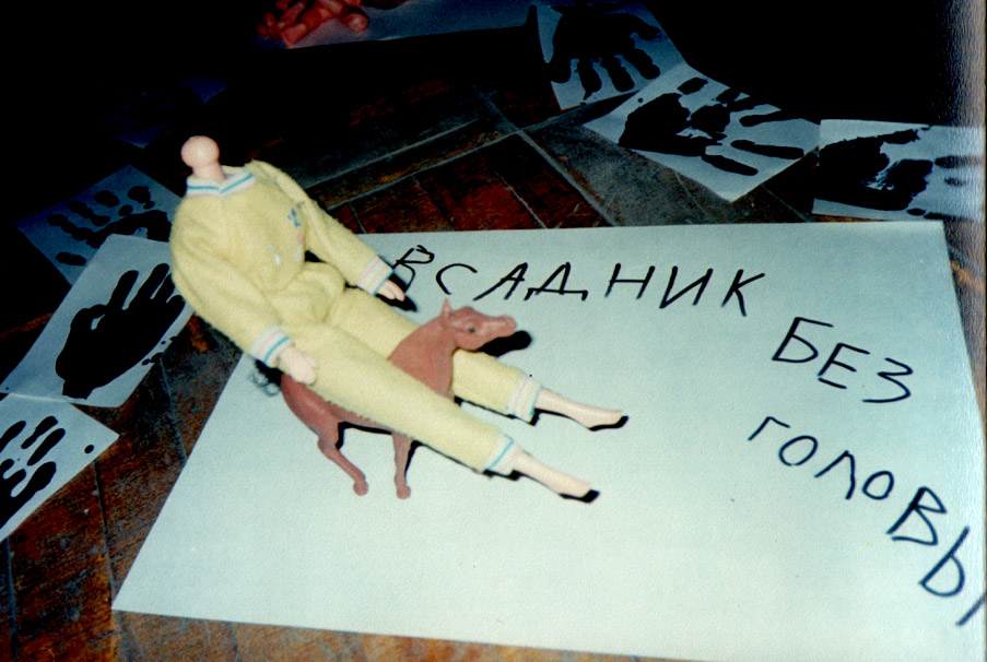 Вариант Третьего эпизода: Болтунья. Перформанс показан в доме Елового, в коллективном проекте “Пятёрочка“, 2003.