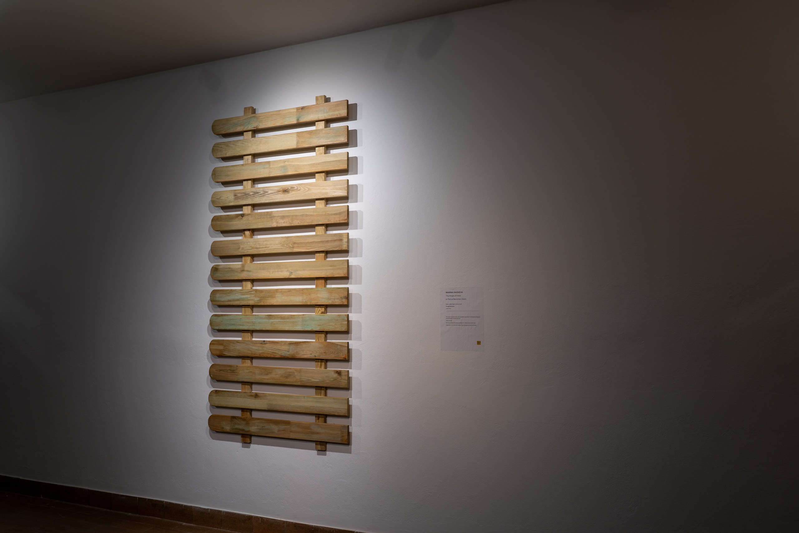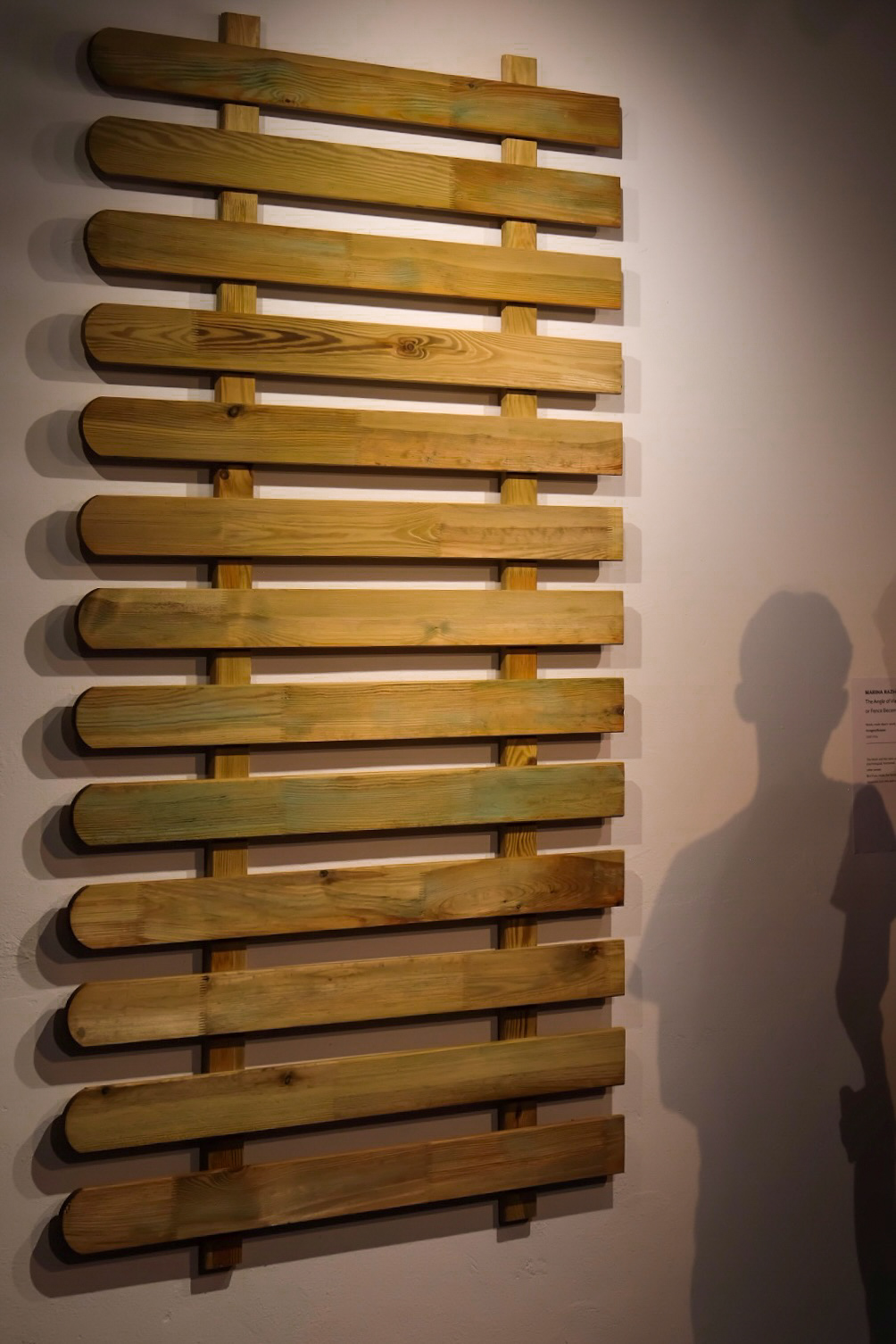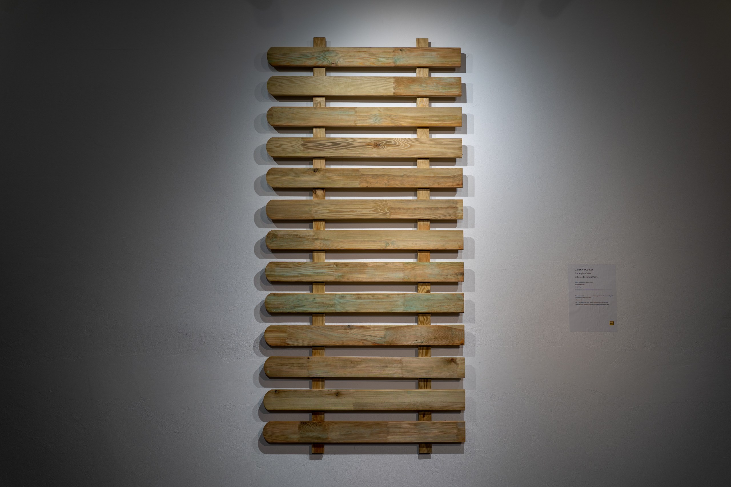 Куратор выбрала для выставки реди-мэйд объект Марины Ражевой “Угол зрения или Забор становится Лестницей”, который был впоследствии передан в коллекцию современного искусства Beka9.